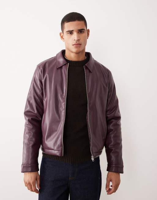 ASOS DESIGN – Vinröd Harrington-jacka i läderimitation