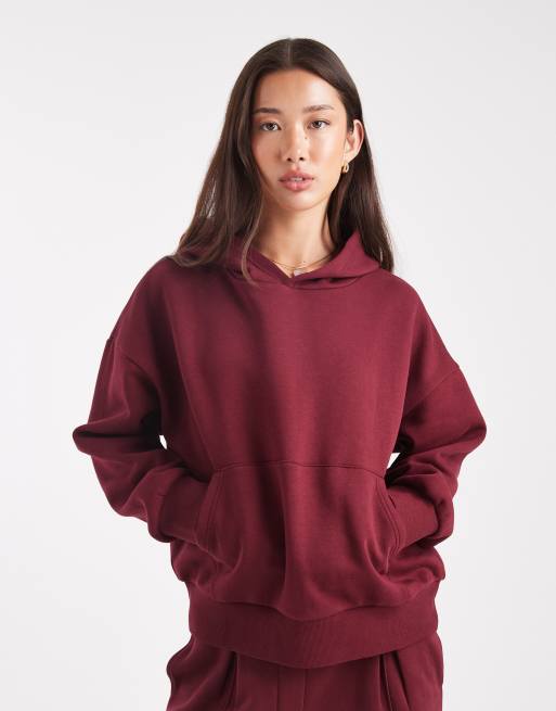 ASOS DESIGN – Vinröd huvtröja i oversize med borstad insida