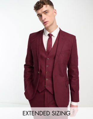 ASOS DESIGN – Vinröd kavaj i linnemix med supersmal passform, del av kostym