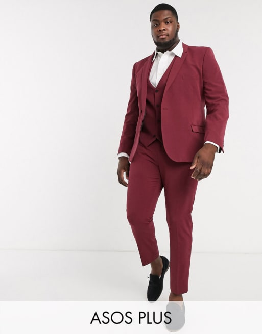 ASOS DESIGN – Vinröd kostym i plusstorlek med supersmal passform