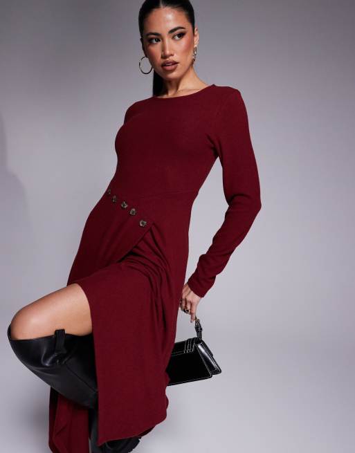ASOS DESIGN – Vinröd, lång omlottklänning med asymmetrisk knäppning