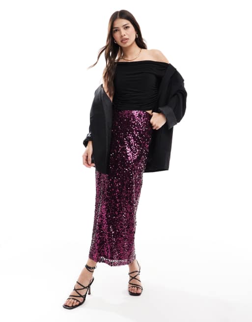 ASOS DESIGN – Vinröd maxikjol med paljetter