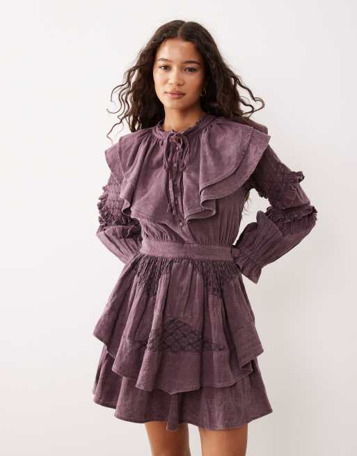 ASOS DESIGN – Vinröd miniklänning med markerad midja, spets och volang