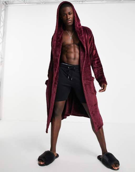 ASOS DESIGN – Vinröd morgonrock i fleece