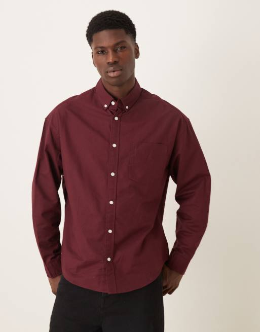 ASOS DESIGN – Vinröd oxfordskjorta med boxig passform i oversize och 90-tals stil