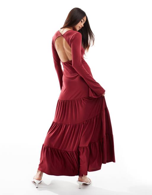 ASOS DESIGN – Vinröd, panelsydd maxiklänning med vida ärmar