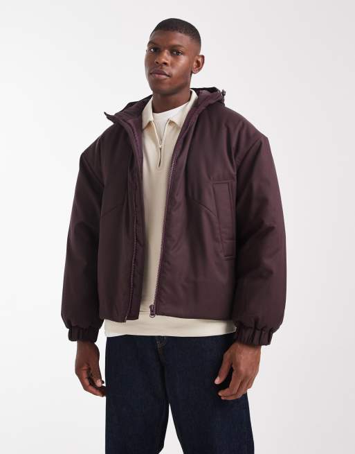 ASOS DESIGN – Vinröd pufferjacka med huva