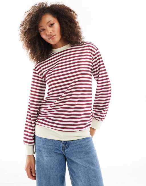 ASOS DESIGN – Vinröd, randig, långärmad topp med kontrasterade ringning och muddar