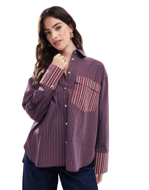 ASOS DESIGN – Vinröd skjorta i blandade ränder, oversize och poplin