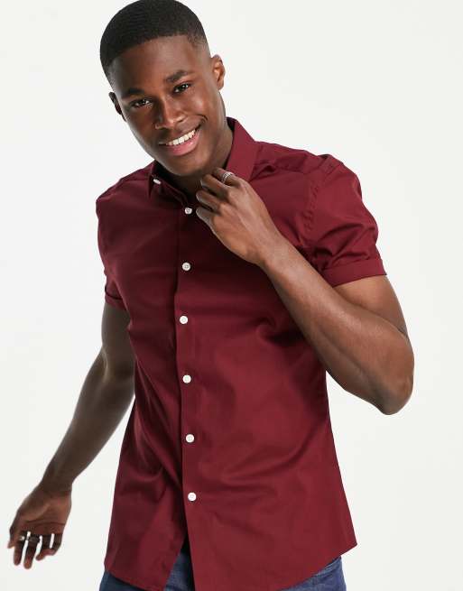ASOS DESIGN – Vinröd skjorta med extra smal passform och stretch