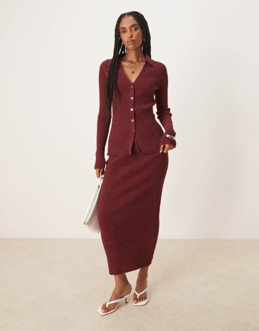 ASOS DESIGN – Vinröd, stickad maxikjol, del av set