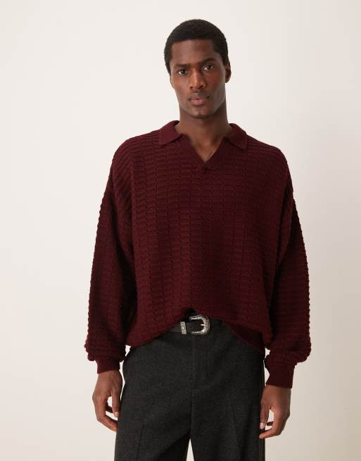 ASOS DESIGN – Vinröd, stickad tröja i oversize med boxig passform och krage