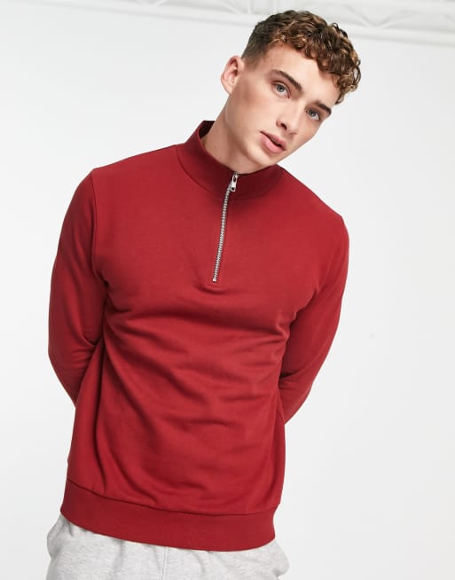 ASOS DESIGN – Vinröd sweatshirt med halvlång dragkedja