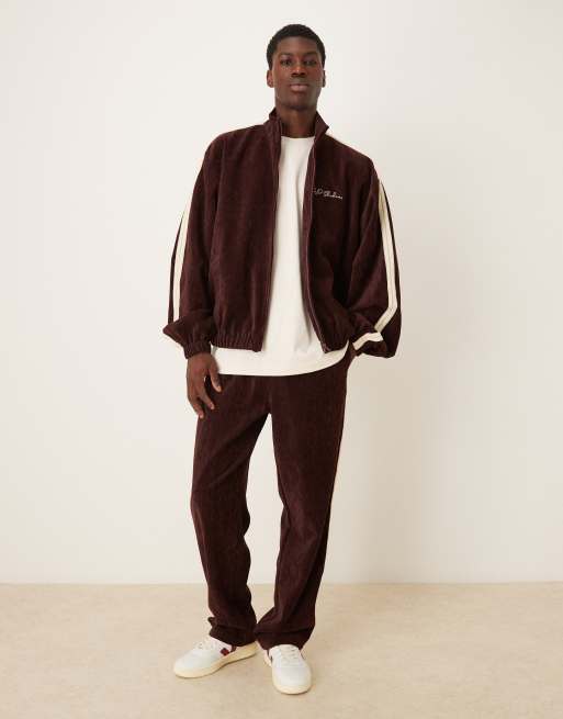 ASOS DESIGN – Vinröd träningsjacka i manchester med broderi