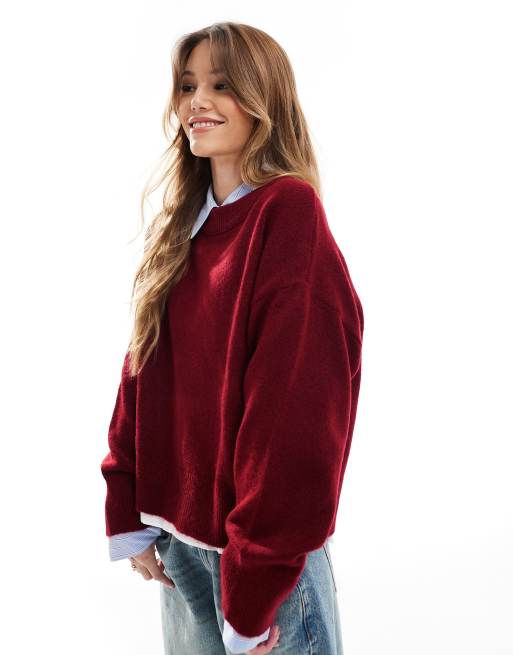 ASOS DESIGN – Vinröd tröja med rund halsringning och boxig passform