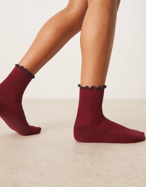 ASOS DESIGN – Vinröda ankelstrumpor med volangkant