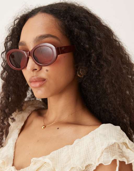 ASOS DESIGN – Vinröda, grova, ovala solglasögon