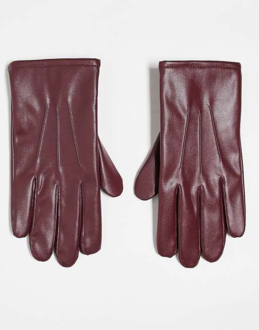 ASOS DESIGN – Vinröda handskar i läderimitation