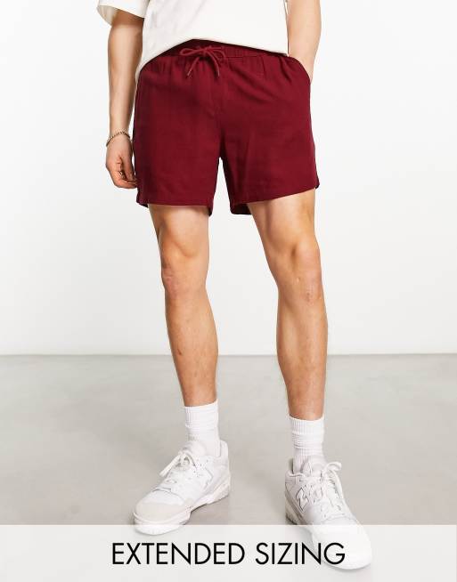 ASOS DESIGN – Vinröda, smala linneshorts i kortare längd