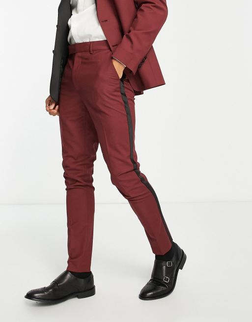 ASOS DESIGN – Vinröda smokingbyxor med extra smal passform