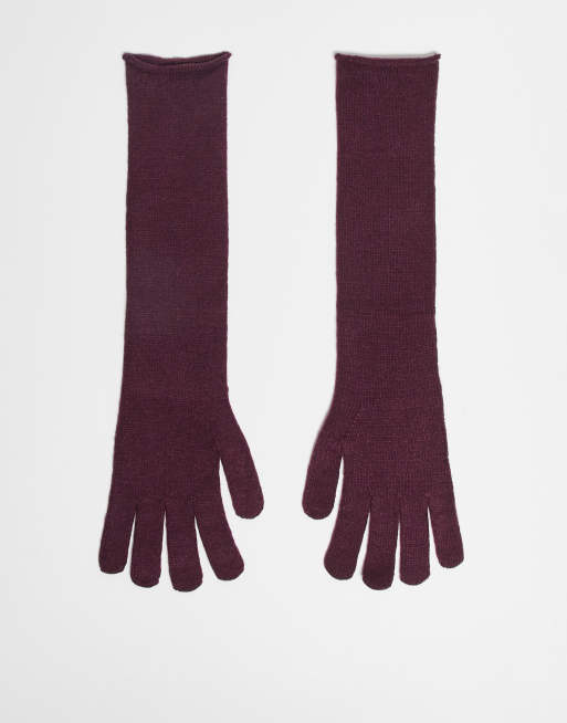 ASOS DESIGN – Vinröda, stickade handskar i lång modell