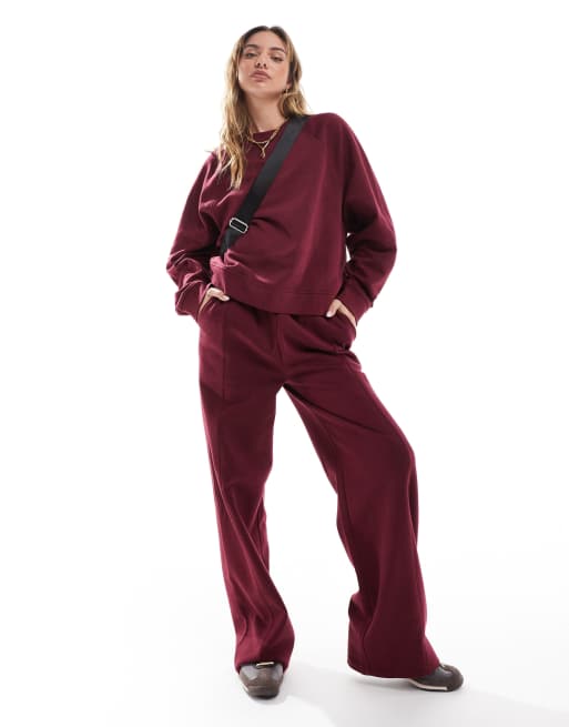 ASOS DESIGN – Vinrött set i sweatshirttyg med raglandetaljer