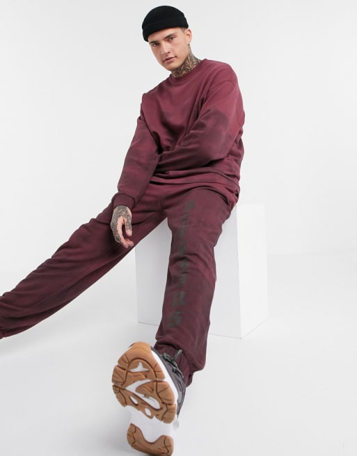 ASOS DESIGN – Vinrött set med textmönster