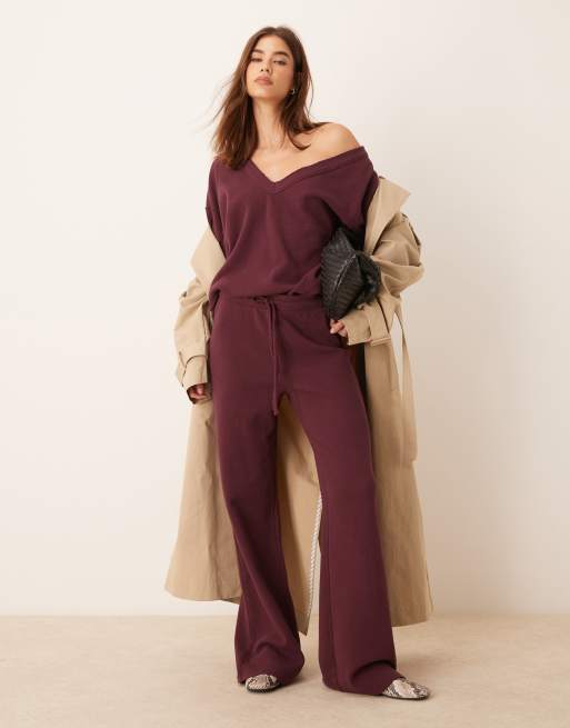 ASOS DESIGN – Vinrött våfflat set med v-ringning