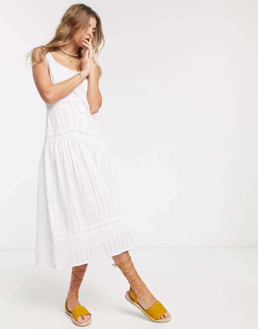 ASOS DESIGN – Vit, ärmlös midiklänning med spetspartier och låg midja