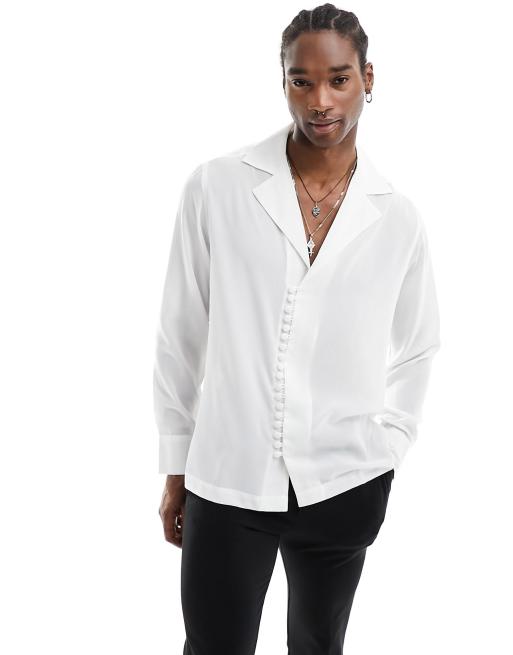 ASOS DESIGN – Vit avslappnad skjorta med bred, platt krage och öglor vid knapparna