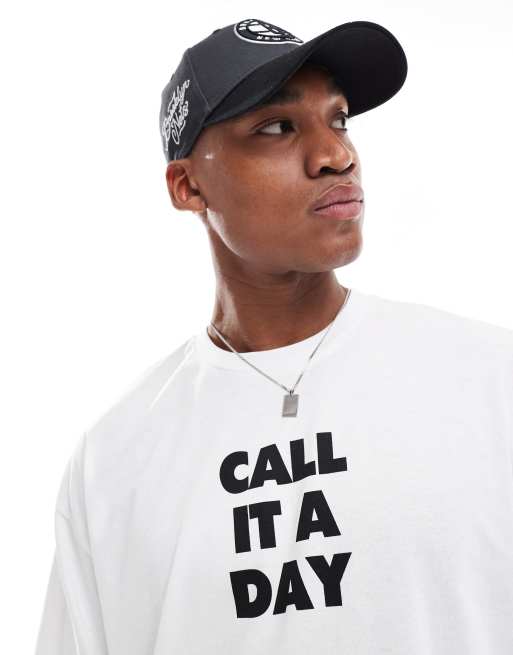 ASOS DESIGN – Vit avslappnad t-shirt i kort design med "Call it a Day"-tryck
