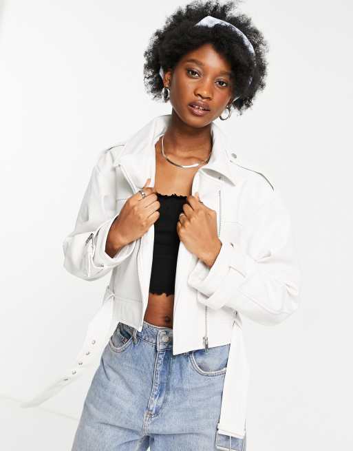 ASOS DESIGN – Vit bikerjacka i läderimitation