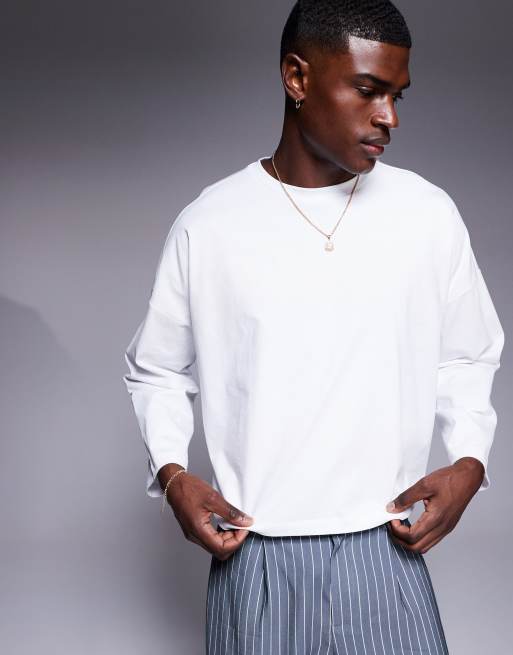 ASOS DESIGN – Vit, grov, långärmad t-shirt i extra oversize med boxig passform
