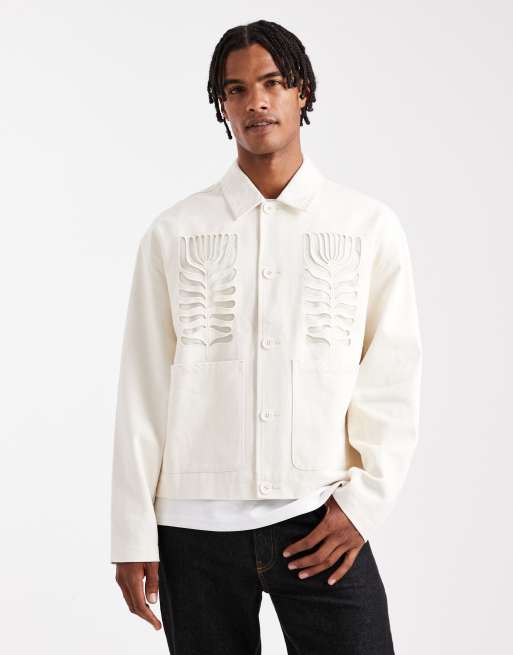 ASOS DESIGN – Vit harrington-jacka med broderade detaljer
