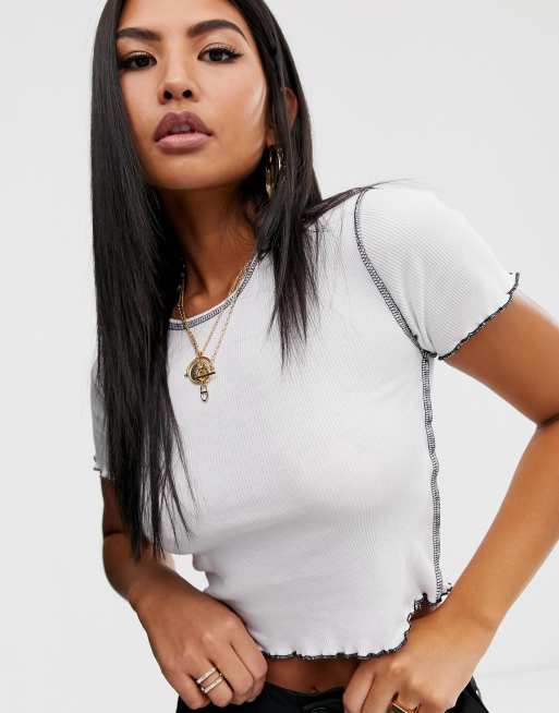 ASOS DESIGN – Vit, kort t-shirt med kontrasterande söm och korta ärmar