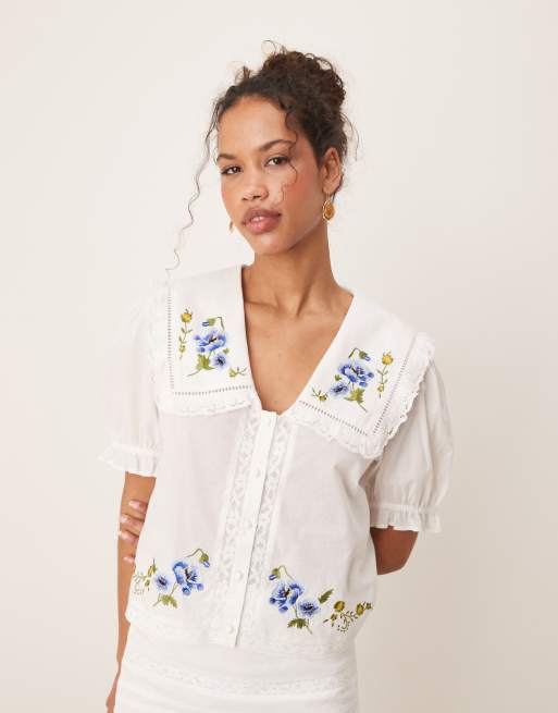 ASOS DESIGN – Vit, kortärmad skjorta med broderad krage, del av set