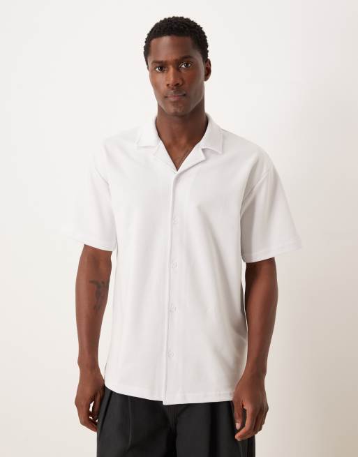 ASOS DESIGN – Vit, kraftig, mjuk pikétröja med avslappnad passform