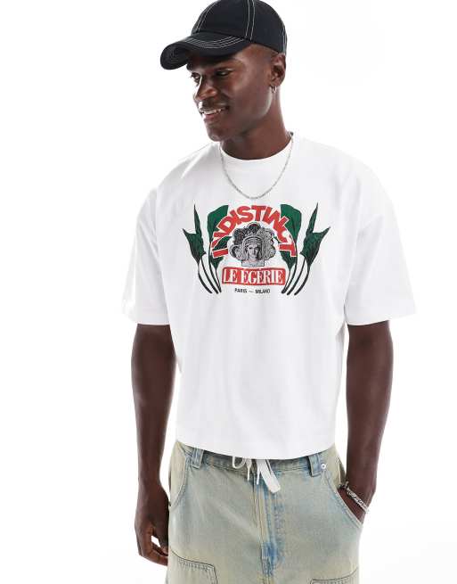 ASOS DESIGN – Vit, kraftig och boxig t-shirt i oversize med tryck framtill, 240gsm