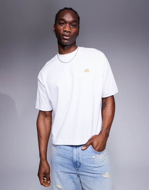 ASOS DESIGN – Vit, kraftig t-shirt i oversize med broderade detaljer