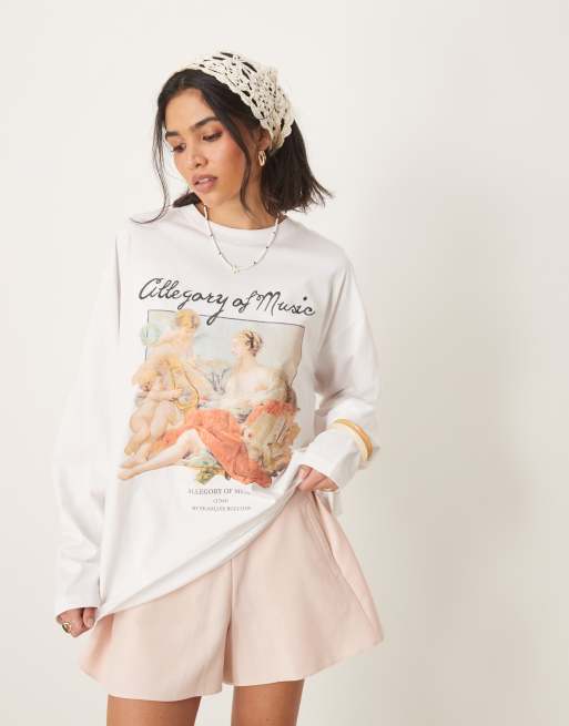 ASOS DESIGN – Vit, kraftig topp i skaterstil med långa ärmar och licensierat National Gallery-tryck