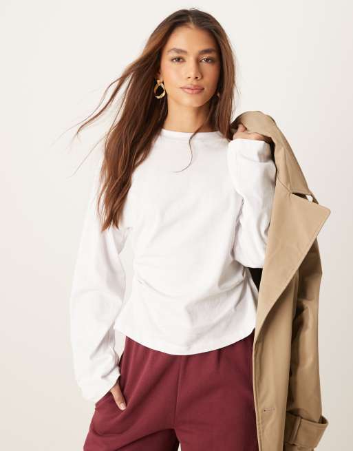 ASOS DESIGN – Vit, långärmad T-shirt med korsettmidja