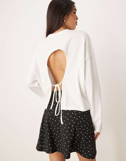 ASOS DESIGN – Vit, långärmad topp med knytning baktill