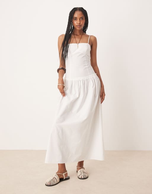 ASOS DESIGN – Vit maxiklänning i poplin med smala axelband, sömdetaljer och vid kjol