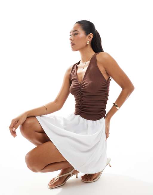 ASOS DESIGN – Vit miniklänning i hybrid-modell med djup urringning