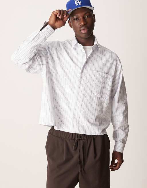 ASOS DESIGN – Vit och grå, kritstrecksrandig skjorta i oversize med boxig passform