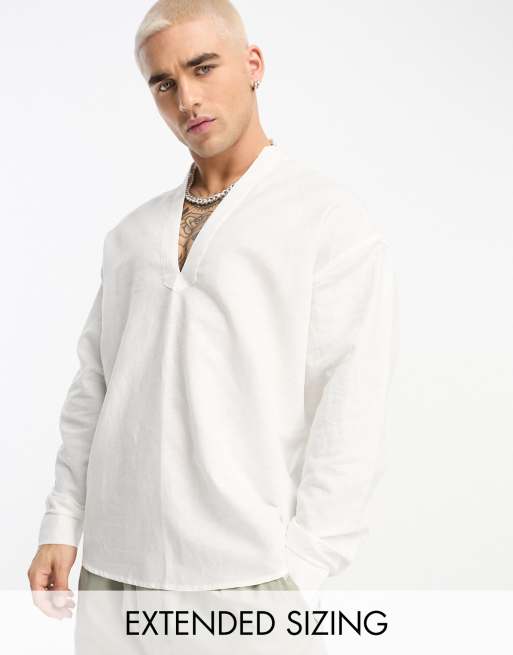 ASOS DESIGN – Vit oversize-skjorta i linnemix och dra på-modell