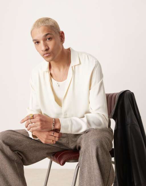 ASOS DESIGN – Vit satinskjorta i kort design med avslappnad passform