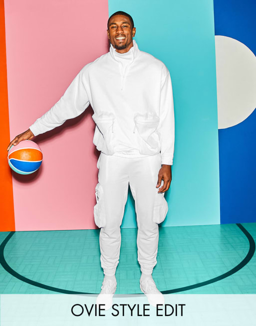 ASOS DESIGN – Vit set med cargofickor i nylon