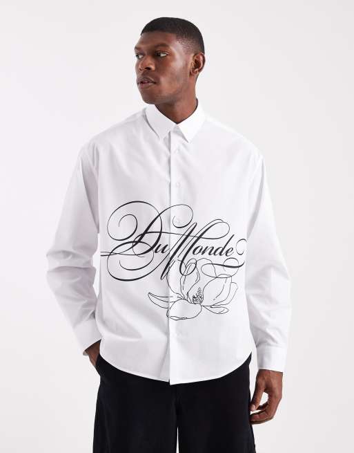 ASOS DESIGN – Vit skjorta i oversize med boxig passform och utplacerat tryck