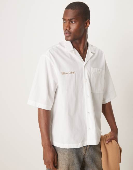 ASOS DESIGN – Vit skjorta med boxig oversize-passform och broderi